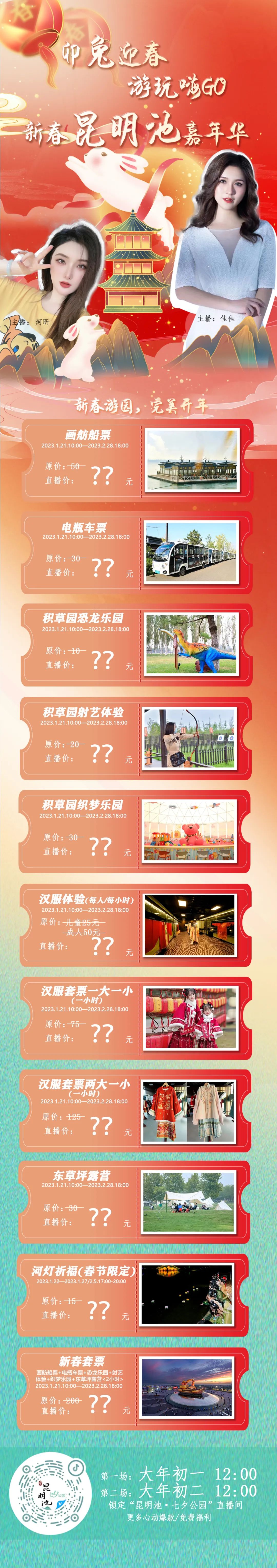 卯兔迎春 游玩嗨GO | 昆明池直播大“放价”,这份“惠”玩大礼包快收好!